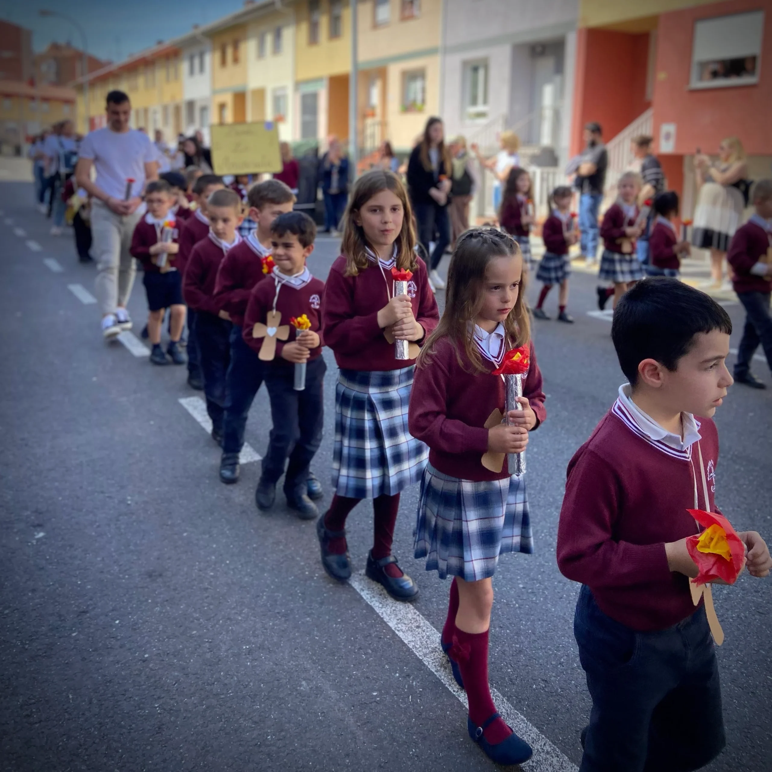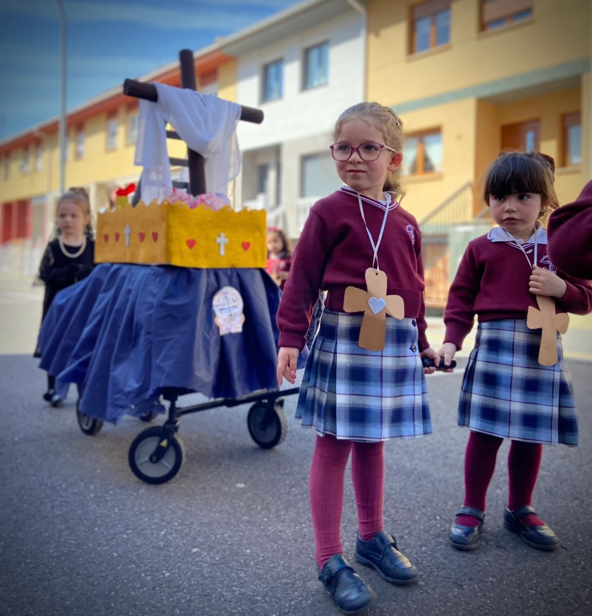 Ya resuena el sonido más emotivo de nuestra Semana Santa leonesa. Los alumnos de Educación Infantil del Colegio La Anunciata de Trobajo del Camino han celebrado este miércoles, 9 de abril, su ya tradicional Procesión de Semana Santa, un evento cargado de emoción, cultura y participación que ha logrado convertirse en uno de los momentos más esperados del curso. Este año, como novedad, ha recorrido las calles cercanas al centro escolar y que contó con la participación de una Banda de Música Procesional compuesta por varios voluntarios de diferentes bandas. Dicha Procesión se lleva realizando con el alumnado de Educación Infantil desde el año 2018, incorporando cada año nuevos elementos que la hacen tan única y especial.