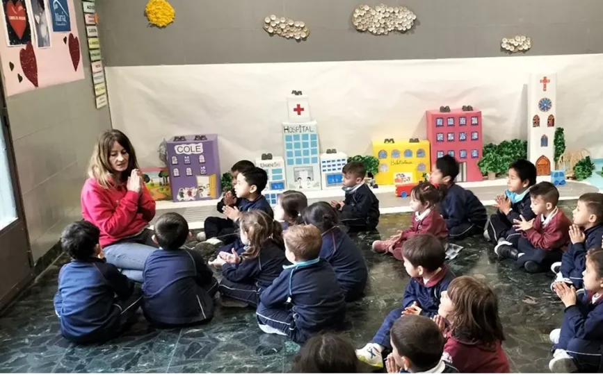 La peregrinación comenzó en la entrada del colegio, donde los alumnos de 1º de Infantil nos despidieron con ilusión y alegría, animándonos a iniciar el camino. Un primer gesto sencillo, pero cargado de cariño y comunidad.
